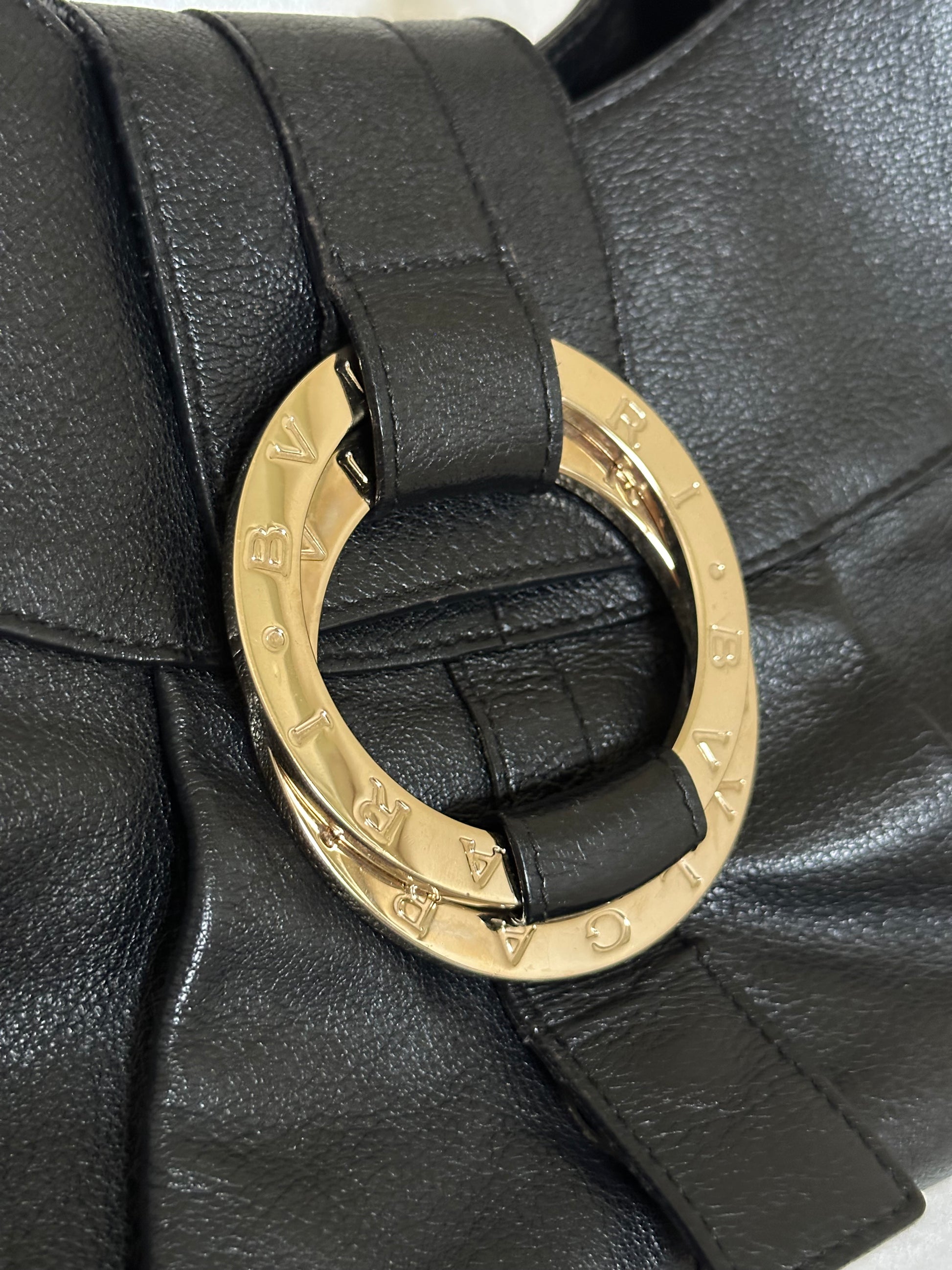 Bvlgari Chandra hobo bag in black leather with gold-tone hardware. This style is a well-known model from the house of Bvlgari, loved for its sophisticated yet slouchy silhouette and elegant design.